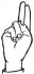 На ћирилици написано ЉУБИСЛАВ МИСЛОПОЉАЦ састоји се из 18 слова [?]. Исписано ћириличном једноручном азбуком за глувонеме: